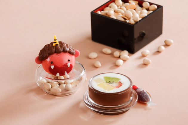 中段は「節分」をテーマに赤鬼と恵方巻に見立てたスイーツ