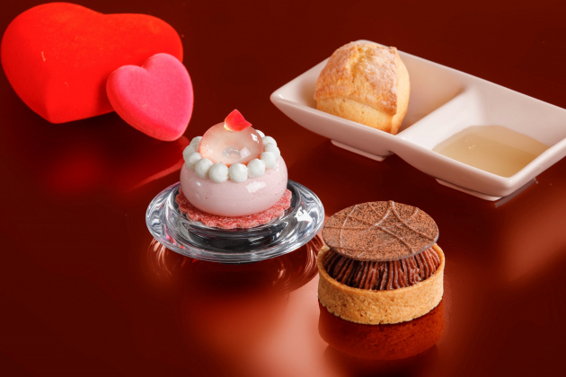 下段は「バレンタイン」をテーマに、ショコラタルトと淡いピンク色のスイーツ