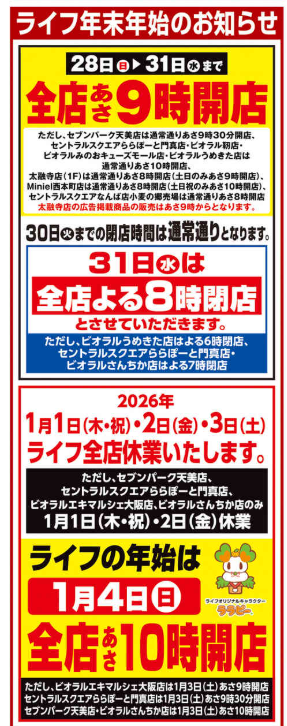 ★ライフ(天王寺店、堺筋本町店、昭和町駅前店、住吉店、四天王寺店、寺田町駅前店、生野林寺店、下寺店、清水谷店、空堀店ほか)