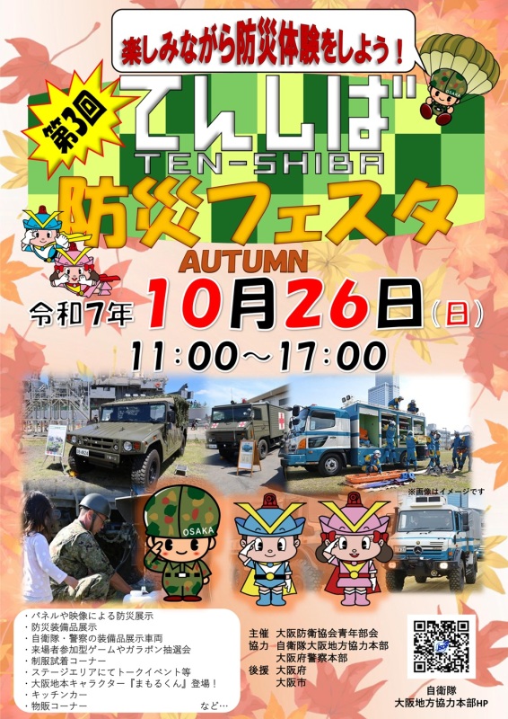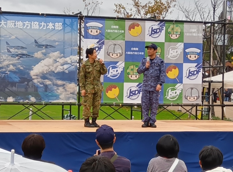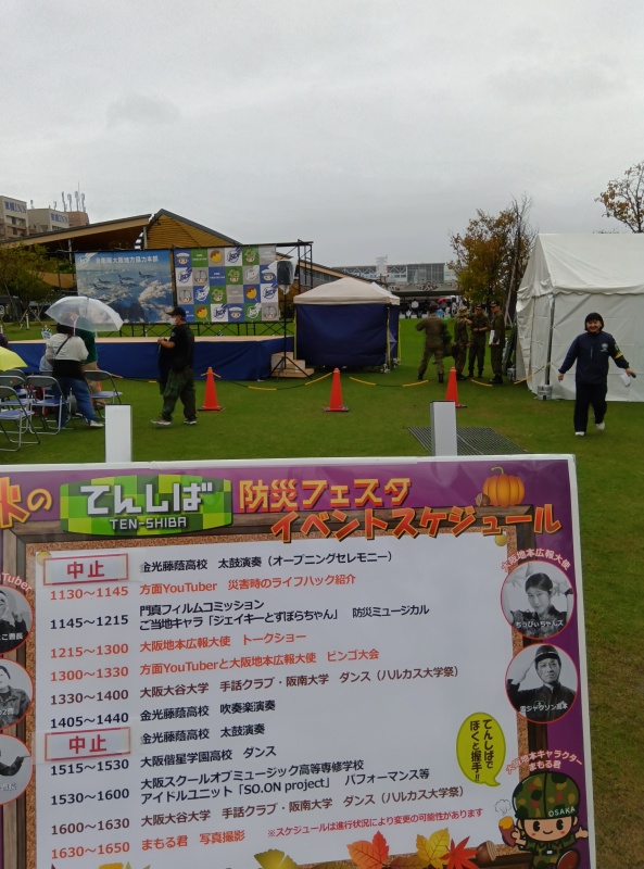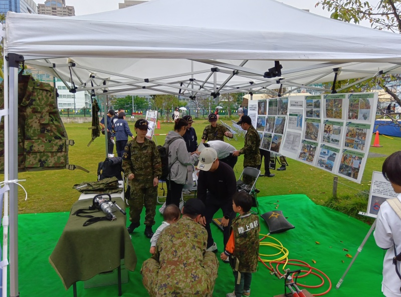 てんしば西側では「第3回 てんしば 防災フェスタ AUTUMN」が行われていました。大阪防衛協会青年部会が主催し、自衛隊大阪地方協力本部と大阪府警察本部が協力しての開催です。