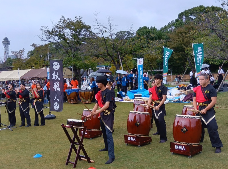 11月26日(日)、小雨が懸念されるあいにくの天候の中、大阪大谷大学・四天王寺大学・阪南大学の学生さんたちによる「ハルカス大学祭 秋」のパフォーマンスが展開されました。