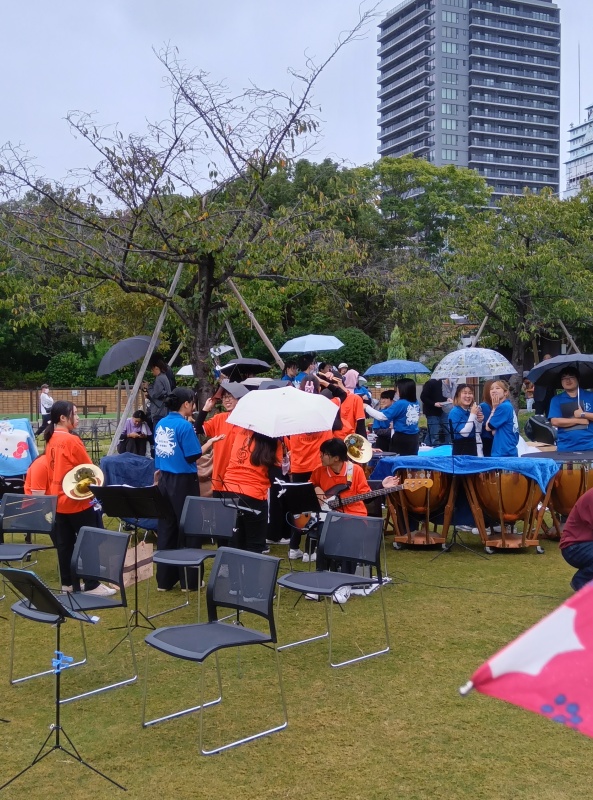 力強い演奏に聴衆も聞き入っていました。学生さんからも「この天候の中、外国からの方、小学生の方などたくさんの方に聴いていただいて、喜んでいただけたので嬉しいです。」との感想も。