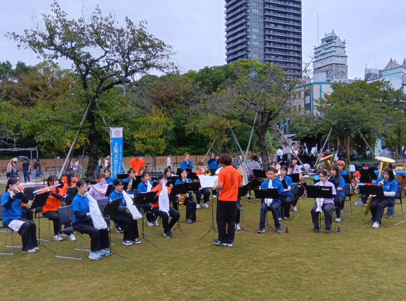 少し雨が心配になってきましたが、日ごろの行いの良さか、なんとか堪えてくれて、三大学協働の吹奏楽演奏が始まりました。軽やかな演奏が続きます。