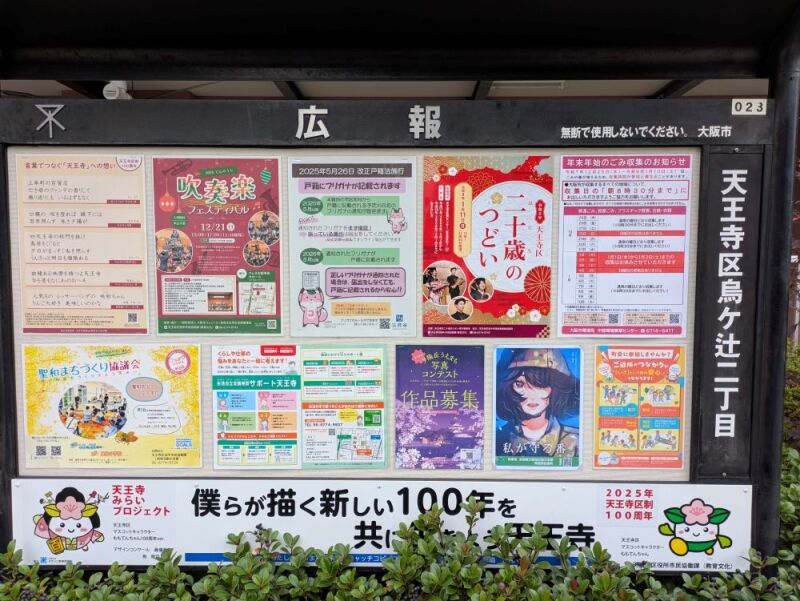 天王寺区烏ヶ辻二丁目の掲示板(12/3)☆街の掲示板 Posted on 2025年12月3日2025年12月22日 by うえまちウェブ編集者 てんのうじ吹奏楽フェスティバル2025 年末年始ごみ収取のお知らせ 天王寺区二十歳のつどい 夕陽丘写真コンテスト ほか