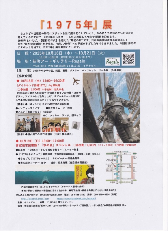 主催:イサオビル 協賛:『1975年』展プロジェクト 協力:青空週末図書館/(株)MTC/MTC project/新町シネマクラブ/顔映画/サンサン商会/神戸特撮好者集団 ほか