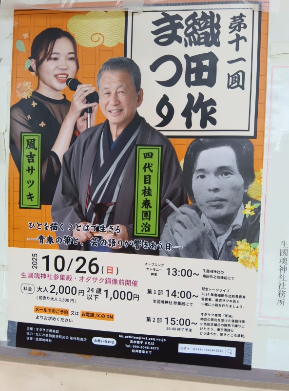 天王寺区生玉前町に生まれ、『夫婦善哉』や『青春の逆説』等の小説で知られる織田作之助。毎年10月の織田作之助の誕生日前後に開催される「織田作まつり」が11月26日(日)、生國魂神社で開催されました。(主催:オダサク倶楽部)