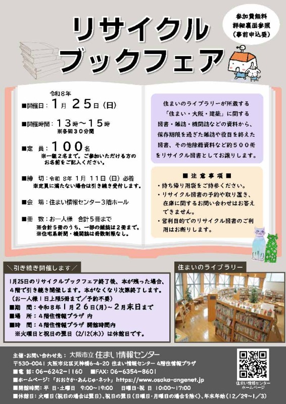 ブックフェア終了後、本が残った場合、4階で引き続き開催。本がなくなり次第終了。