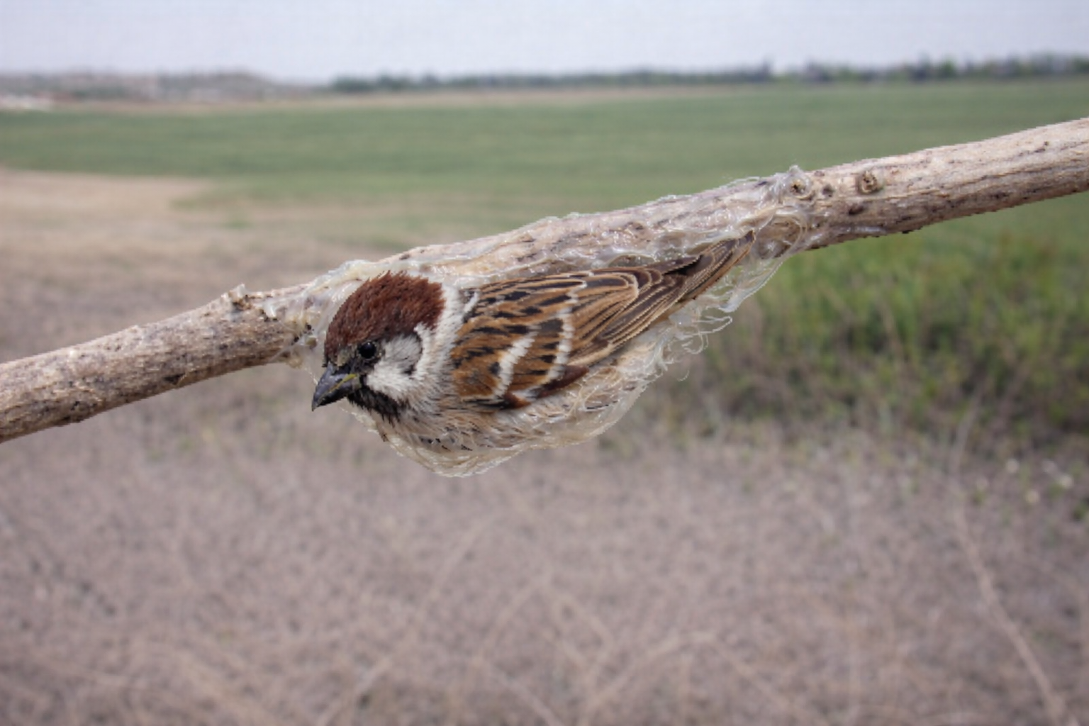 鳥刺とは、黐(もち)の木や黒皮黐(くろかわもち)の木の樹皮で作ったゴム状の粘着性がある鳥黐(とりもち)を、鳥黐芋と呼ばれる竹竿に付けて、雀・雲雀(ひばり)・鶯(うぐいす)・目白・頬白(ほおじろ)・鶫(つぐみ)・獦子鳥(あとり)・金糸雀(カナリヤ)といった小鳥を捕える猟師である。