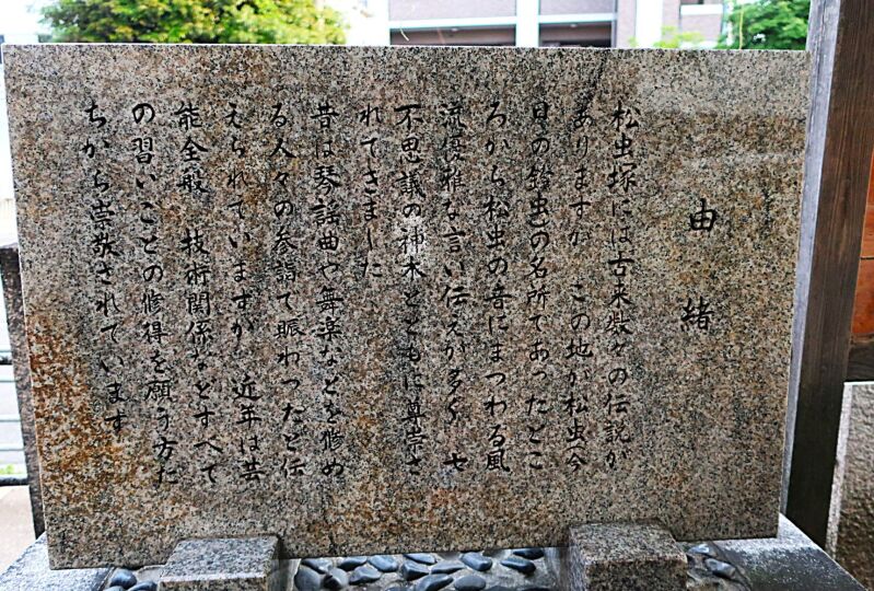 写真下の由緒書によれば、芸事上達の祈願で訪れる人もいるのだとか。積み重なった歴史の力を感じる――。そんな場所であることは間違いありません。