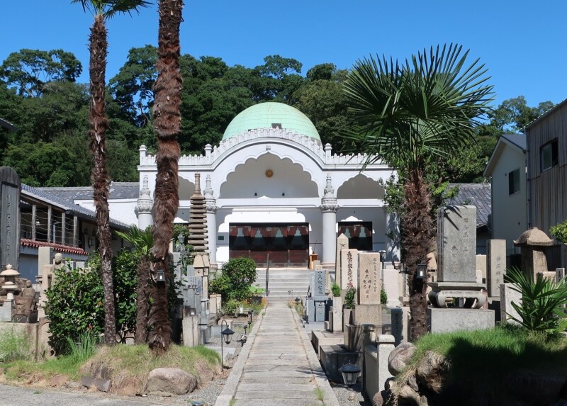 金臺寺は1656年ごろの創建で、創建時に建てられた本堂(写真上)は大阪市内の浄土宗本堂としては最古です。庫裏、書院、山門、鐘楼など江戸期の建築が見事に保存されており、まとめて大阪市の文化財に指定されています。一方、写真下の心光寺の本堂はインド風。火事により焼失した本堂を、昭和初期にいまの形に再建したのでした。登録有形文化財ですが、当時の住職の設計によるというのには驚かされます。他にも、下寺町には文化財級の建物がたくさんあり、“宗教都市・大阪”の息吹を感じることができます。