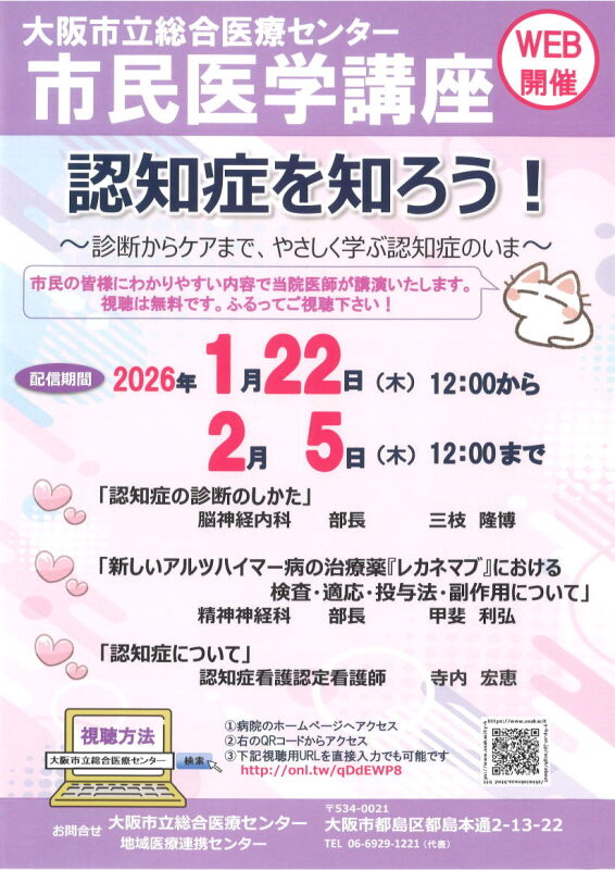 1/22-2/5 市民医学講座「認知症を知ろう」(オンライン)