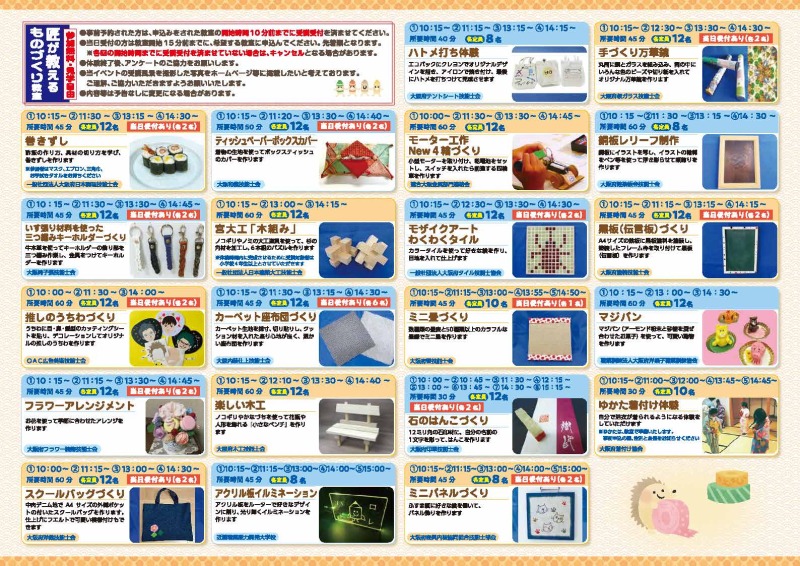 ※事前予約制のコーナーは、定員に達し次第終了となり、現在申込は締め切られていますが、当日受付コーナーもございますので、そちらをご利用ください。