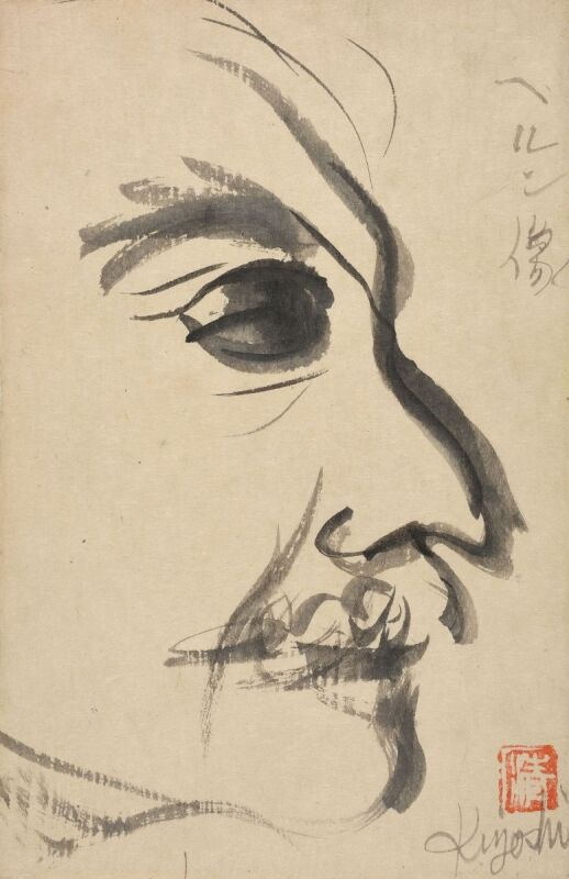 画家を志した八雲の三男・小泉清(1899~1962)が描いた八雲の右横顔。少年時代の事故で左目を失明した小泉八雲は写真でも頑なに左目を隠したと言われています。しかし清は、八雲が隠し続けた左横顔も描いており、本展では、左横顔の絵も出品されています。